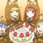 ゼノブレイド2、4周年おめでとうございます!!キャラもストーリーも音楽も好きすぎる作品、ホムヒカのスマブラ参戦も嬉しすぎました。4人でポンチョ着てお祝い!! #Xenoblade2_fes21