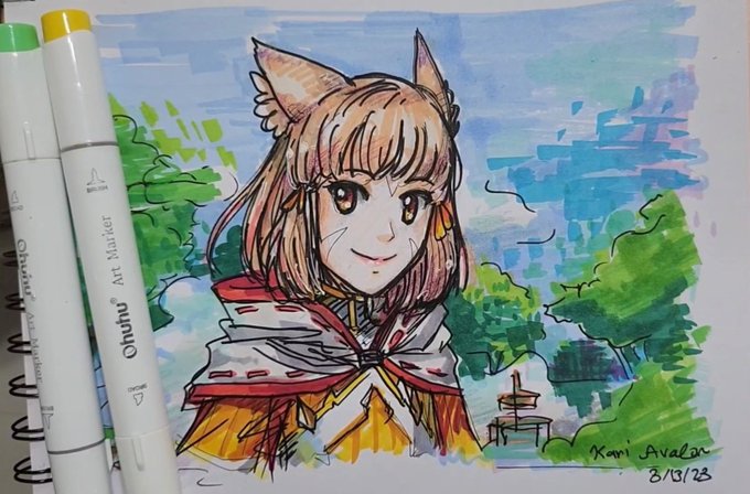 It's been over a year since I used markers. Since I finished playing Xenoblade Chronicles 2 lately, I decided to doodle a quick portrait of Nia. I really enjoyed her character writing a lot (´▽`) #kariavalonart #XenobladeChronicles2 #xenoblade