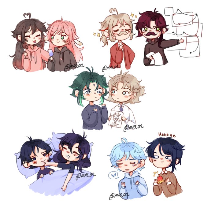 I have normal drawings, but these toddlers are funnier🥲 . . #xiaobedo #yantao #scaramona #xingyun #kazuhei #genshinimpactfanart #genshinimpact