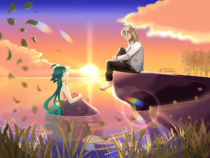 Сяо ждет когда смена его парня законится)) #Genshinlmpact #genshinimpactfanart #xiao #albedo #xiaobedo