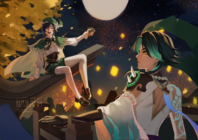 [Lantern Rite gathering 7/6] a few hours later ~ 🎇 #GenshinImpact #Genshinfanart #xiao #venti #xiaoven #LanternRite #XiaoVenWeek #Xiaovenweek2023 #LanternRite2023