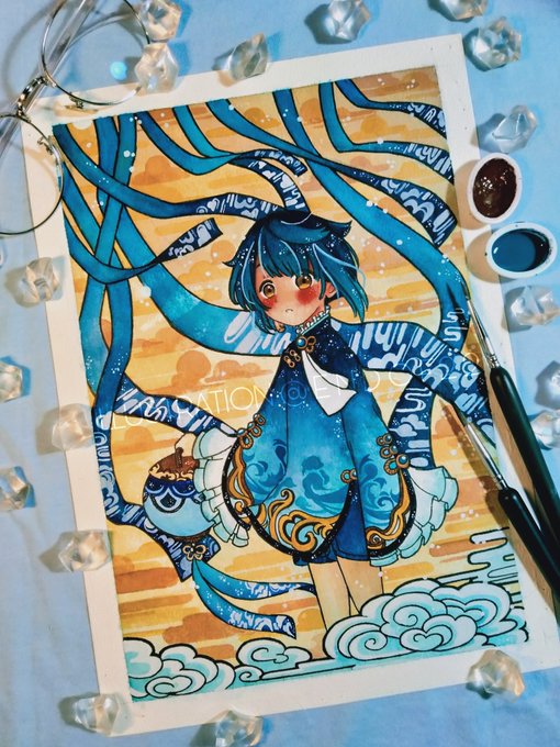 Cosa sono riuscita a fare nonostante abbia 39 di febbre e raffreddore TwT. Happy birthday Xingqiu 💙💛💫 #XingqiuBdayWeek2021 #xingqiu #genshinimpactfanart #GenshinImapct #genshinimpact #Genshinfanart #miHoYo #primogems #fanart #animestyle