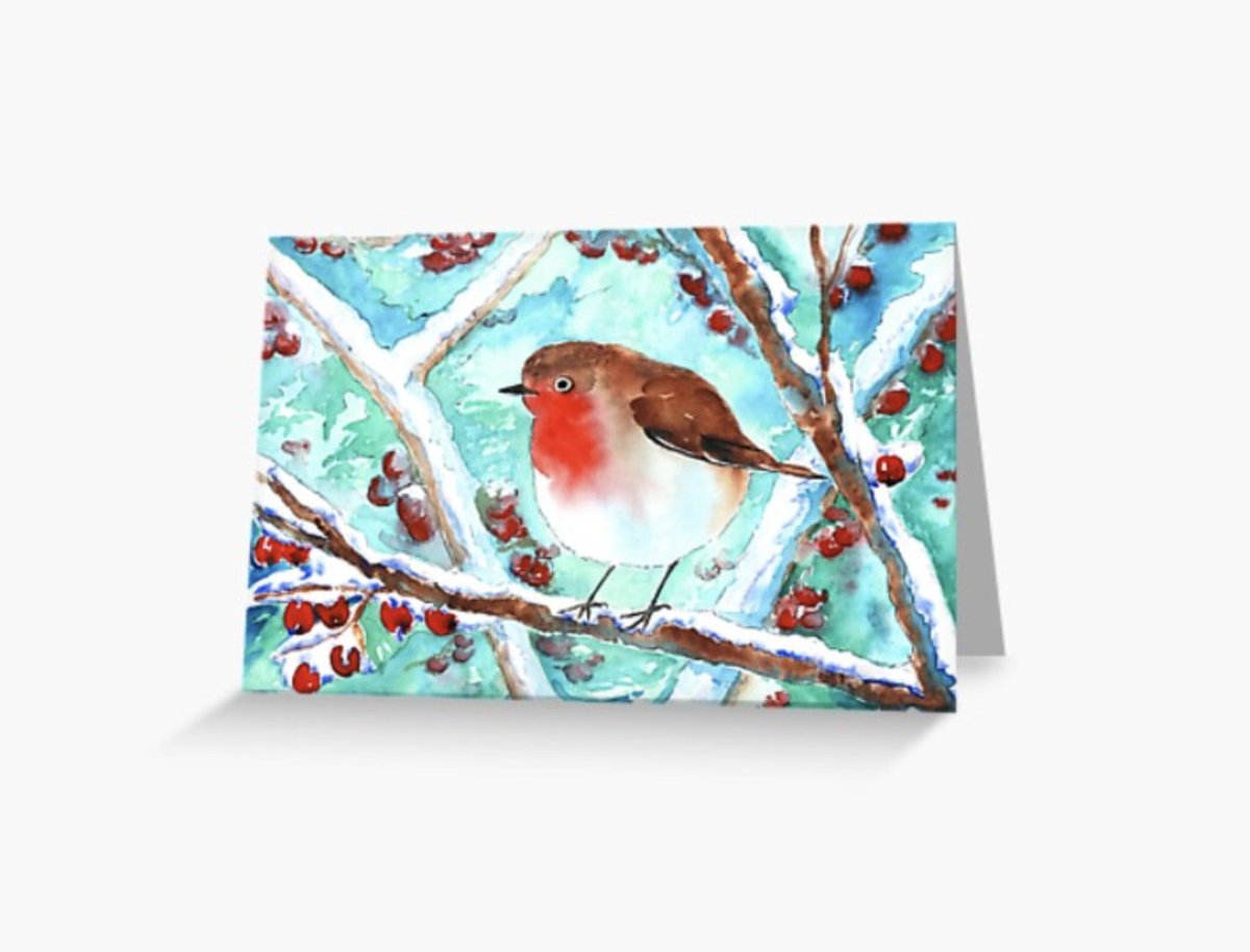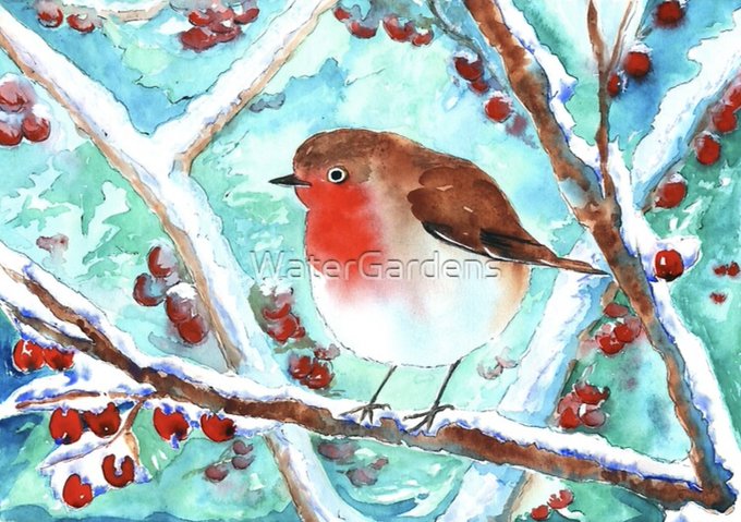 Robin Christmas cards in my #Redbubble shop tinyurl.com/2ey9s4e7 He looks a bit stoned #ChristmasCards #Christmas #XmasCards #Xmas #GiftIdeas #TraditionalChristmas #ChristmasRobin