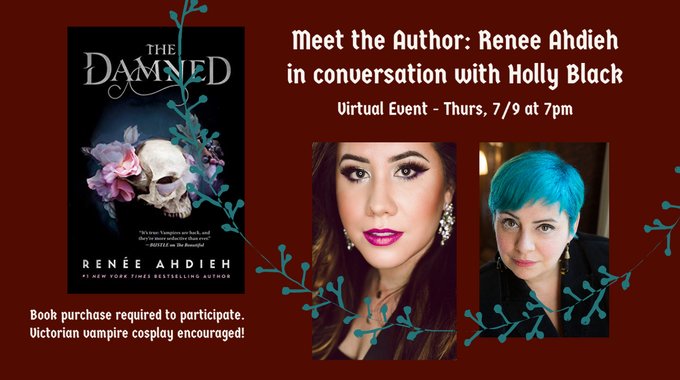 Wear your best Victorian #vampire #cosplay for a virtual book talk with author @rahdieh, in celebration of her new novel THE DAMNED. Renée will be in conversation with #YAfantasy author @hollyblack. Get ticket details here: bit.ly/2NsRRmY @mainstreetbooks