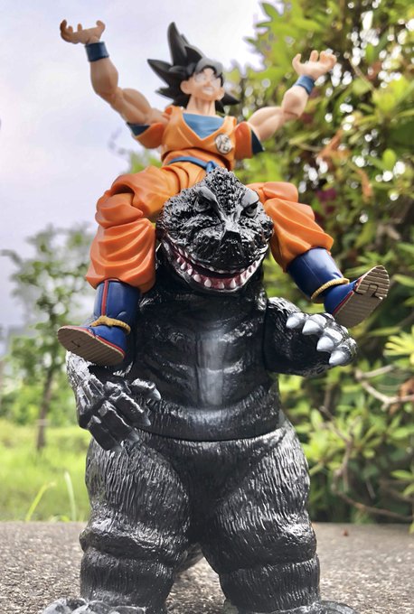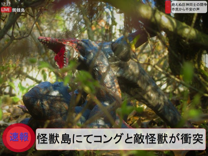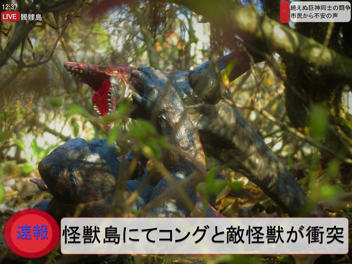 #おもちゃ撮影会 4/8テーマ「外で撮った写真」 巨神激突! #オモ写 #toyphotography #YMSF #さくらコング #Playmatestoys #プレイメイツトイ #スカル・クローラー #ちいさな巨大特撮