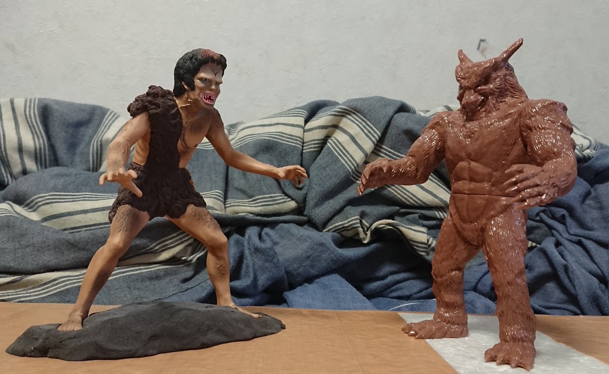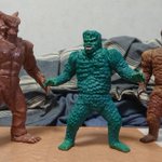 YMSFのウルフマン! 猿男やそっくりさんと撮影! ガイラ「え!どっちが兄貴⁉️」 【フランケンシュタイン対狼男】 #YMSF #フランケンシュタイン #サンダ対ガイラ #キングコング #特撮 #あなたのソフビ紹介 #夜のフィギュア撮影会