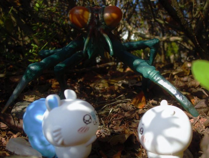 10月のNewフェイス! カマキラス‼️ バンダイ1993年版のものと比較。 廃れた個体をボコボコにし、3人衆の新たなボスに!(笑) #カマキラス #ゴジラ #YMSF #特撮 #怪獣 #ソフビ #あなたのソフビ紹介 #夜のフィギュア撮影会