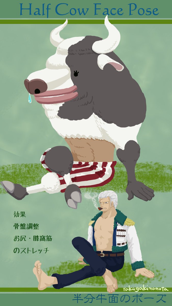 #スモーカー誕生祭2022 ス...モ~~~(牛)なのでwww 本日のおうちヨガしませんか? #半分の牛面のポーズ 少し前誕生日だった #ミノタウロス と一緒ですwww🐮モ~~~ #onepiece #yoga #イラスト