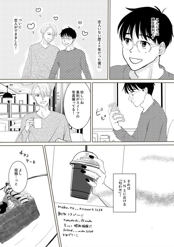 #YOIピクスク花束 「花束をきみに」に参加します! スぺースは「VY:え2」です。 無配漫画と新刊の追加サンプルを用意しております。 詳しくはお品書きをご覧ください ※無配漫画の公開は10日の朝を予定しております。 準備出来次第ツイッターでお知らせします。 どうぞよろしくお願いいたします😊