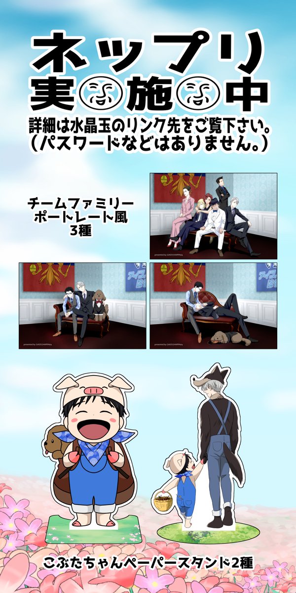 💐4/10花束をきみに💐お品書き💐 スペース:VY−2 い5 / HAPPA64 お品書きの絵柄でネップリを実施します✨よかったら覗いてやって下さい〜\(^o^)/ネップリはローソンファミマとセブンイレブン対応です。 #YOIピクスク花束