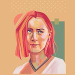 Illustration by Rebecca Sampson of #SaoirseRonan's character in Greta Gerwig's film, #LadyBird. #Explore her work: buff.ly/3JPXlDp #portrait #illustration #gretagerwig #film #female #painterly #celebrities #youth #orange #editorial #portraitillustrator #digitalart