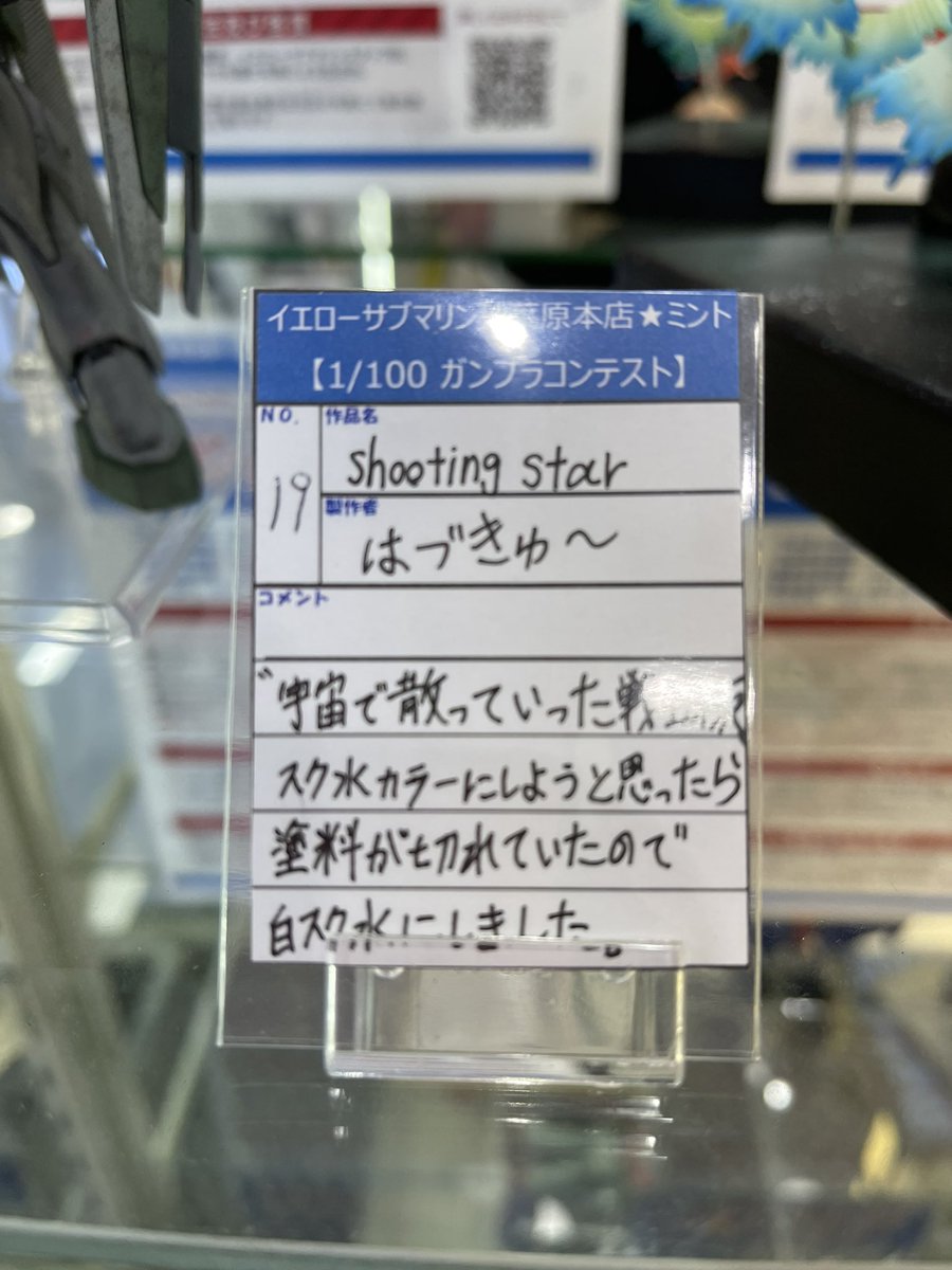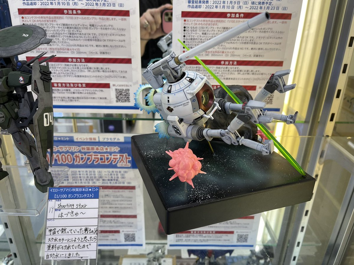 秋葉原イエローサブマリンの1/100ガンプラコンペにエントリーしてきました。 80番でした!すごい数の力作が並んでます。 お近くにお越しの際はぜひお立ち寄り頂くことをおすすめします! #YS100ガンプラコン