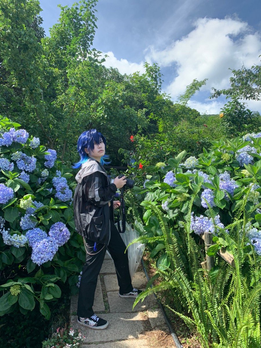 “Blue Hydrangea:”: Dreamy, Romantic, Perfect. 「ブルーアジサイ」:夢のような、ロマンチックな、完璧。 #AsumArt #YugoAsuma #YUGOBIRTHDAY2022 Sorry for being late! 遅刻してすみません!>< Photo & coser: it's all me~