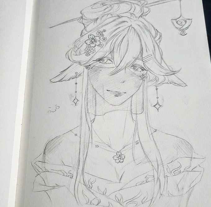 Some more progress on Yae Miko ☆ Follow me on Instagram as well: @ashiesartadventures and retweet! ~Tags~ #yaemiko #genshinimpactyaemiko #genshinimpactfanart #genshinimpact #yaemikoart #yaemikocosplay #gaming #drawingart #drawing #pencildrawing #pencilart #yaemikogenshinimpact