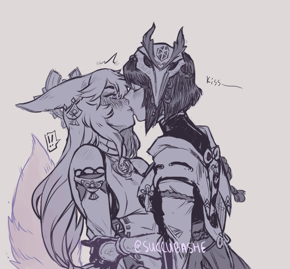 Генерале Кудзьо, я давно хотіла спробувати себе у стрільбі з лука. Але яка невдача, я зовсім не знаю техніки. Не покажете мені, як краще встати? #KujouSara by @valamar_s #YaeMiko by me Ph/edit: @TreeMasala #GenshinImpact #cosplay #укркосплей #yaesara