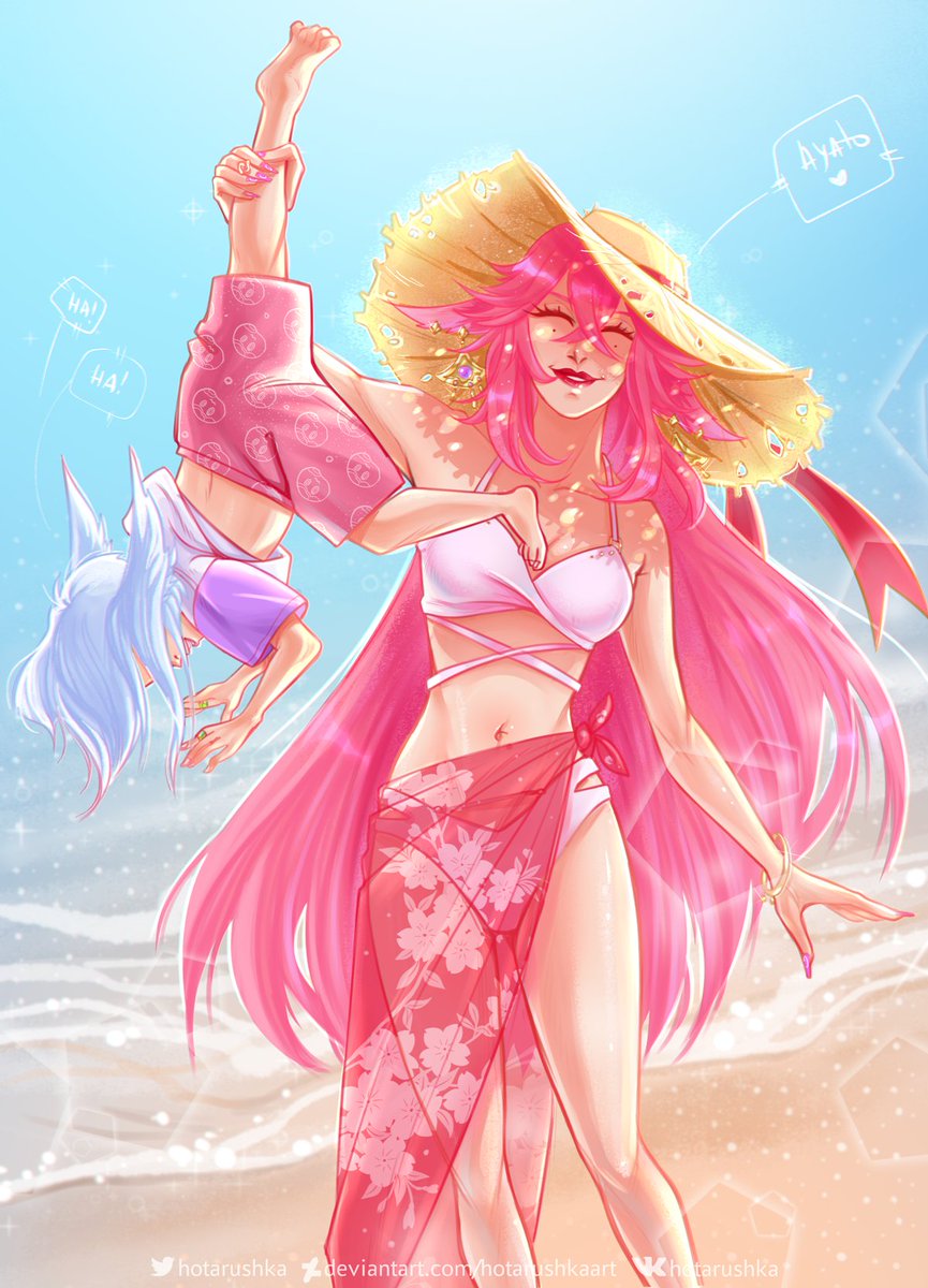 It was supposed to be the third day of the #yaeyatoeventsweek1 🌸👀 I have long wanted to draw them from meme photos, sooo ta-daaa! Yae and Ayato are great parents :D #yaeyato #YaeMiko #AyatoKamisato #GenshinImpact #genshinimpactfanart