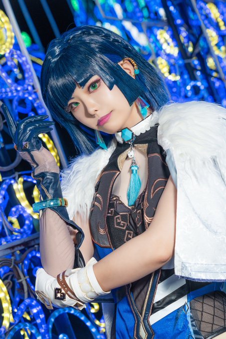 昨日のおそくほー🎲💙 池ハロぶりの夜蘭でした✨ 可愛い煙緋ちゃんと併せできて幸せだった〜( ˊ͈ ˙̫ ˋ͈ ) スタジオのエアコン効かなすぎてイベントより汗だくだったwwww #Yelan #gensinimpact
