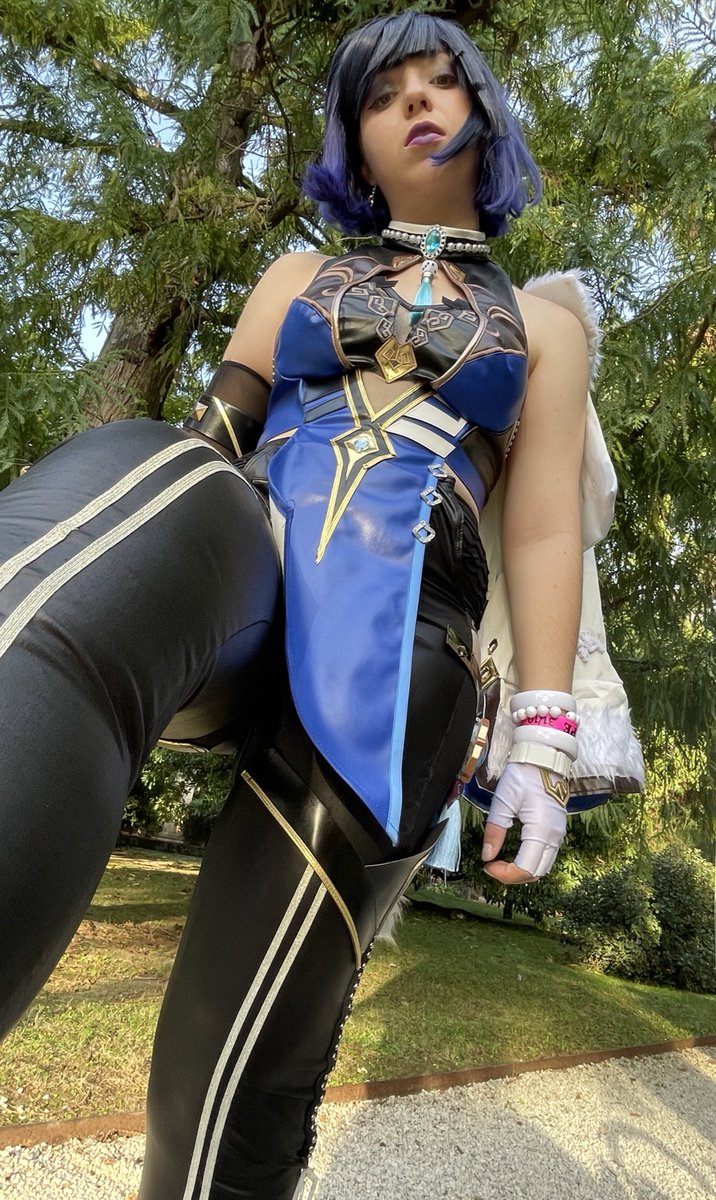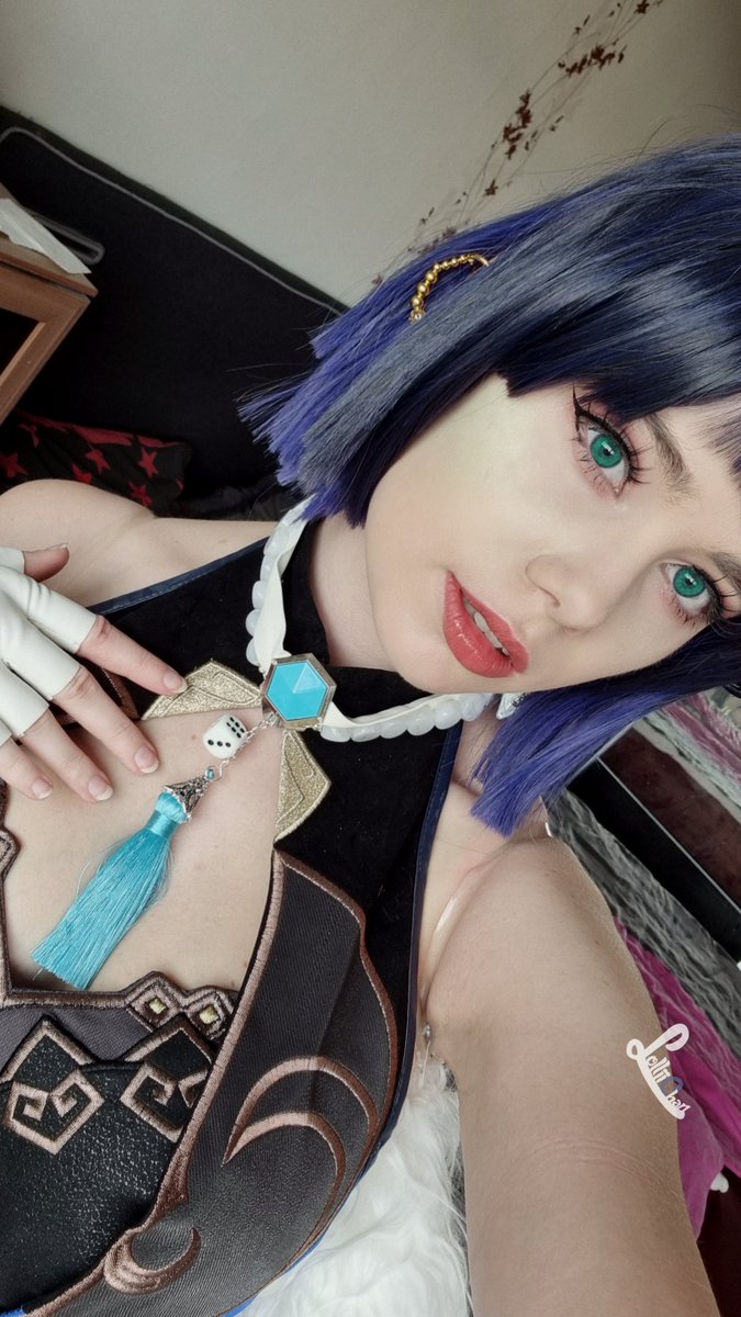 :'3 al fin salió el primer #cosplay de este año, me falta arreglarle cositos al cosplay, rehacer algunos detalles y hacer sus pops, como el arco y el dado pero al fin tenemos a #yelan de #GenshinImpact, fue un test. #yelancosplay #genshincosplay #waifu #cosplayer #cosplaylatam