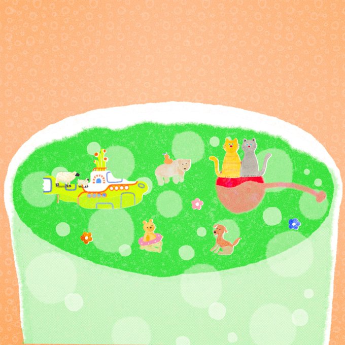旅するひつじ おはようございます☀ #イラスト #コラージュ #水彩 #イラスト好きな人と繋がりたい #絵描きさんと繋がりたい #絵本 #クリームソーダ #TheBeatles #yellowsubmarine