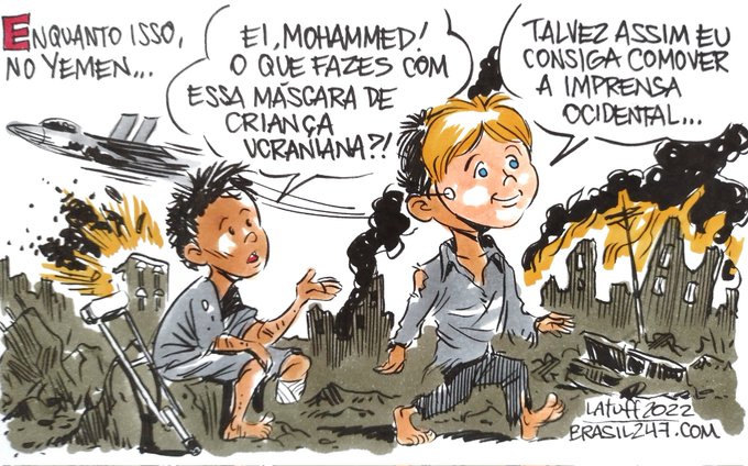 Meanwhile, in #Yemen... - Hey, Mohammed! What are you doing with an Ukrainian child mask? - Maybe this way I can touch the Western mainstream media... #Ukraine️ #UkraineRussiaWar @brasil247