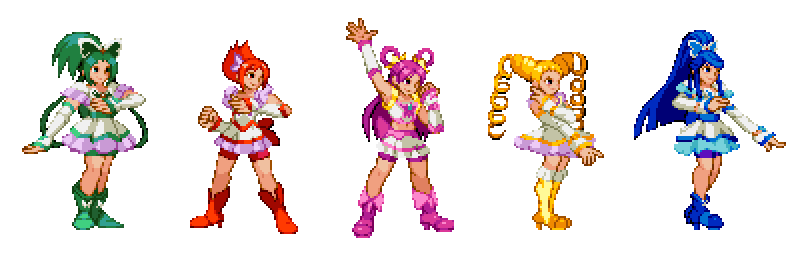 Yes! Pretty Cure 5 (CPS2) Here is a group sprite that I have commissioned from @countgate He did a pretty good job on them. You can also check out his recent works he has done in the past. #YesPrettyCure5 #Precure #pixelart #YesPrecure5 #PrettyCure