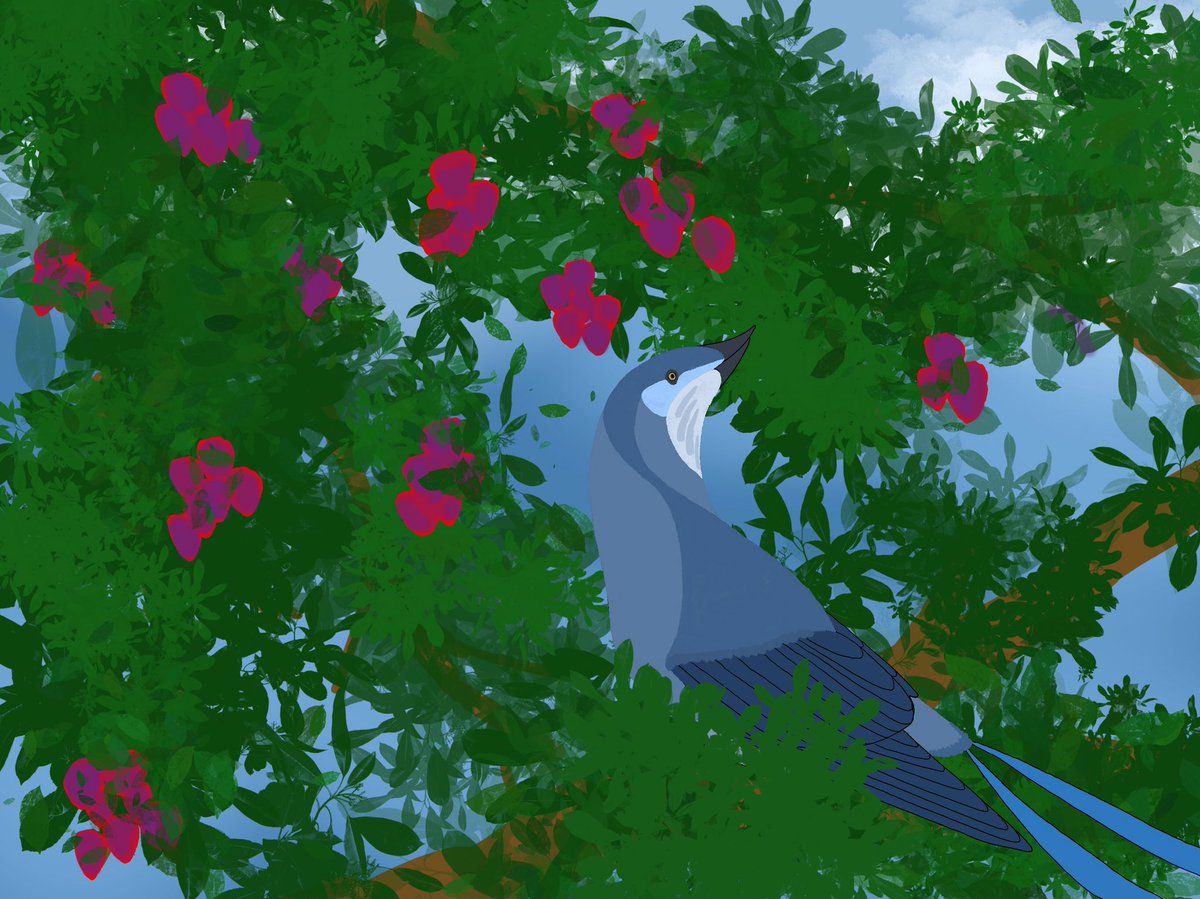 For #PRDinovember2021 Day 2, Confuciusornis dui inspects fermenting berries. #Dinovember #digitalart #paleoart #yixian