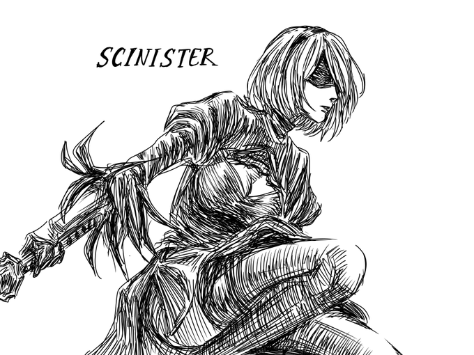 Inktober - fanart. Day 6. Nier: Automata. Not comic related today, but it’s one of a few exceptions. Credit to @castcuraga for pose-reference on 2B. #inktober #inktober2022 #ink #illustration #nierautomata #nier #2b #yorha