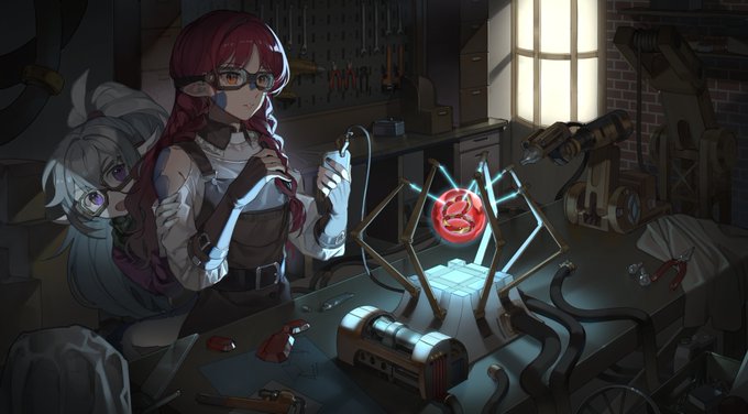 Ileae, the scientist vastaya, and little Bell ⚙️🐍 She's crafting her gf's magic ear rings, as a gift Commission by @Cone_head00 💜 #LeagueOfLegends #ArtOfLegends #Vastaya #yordle