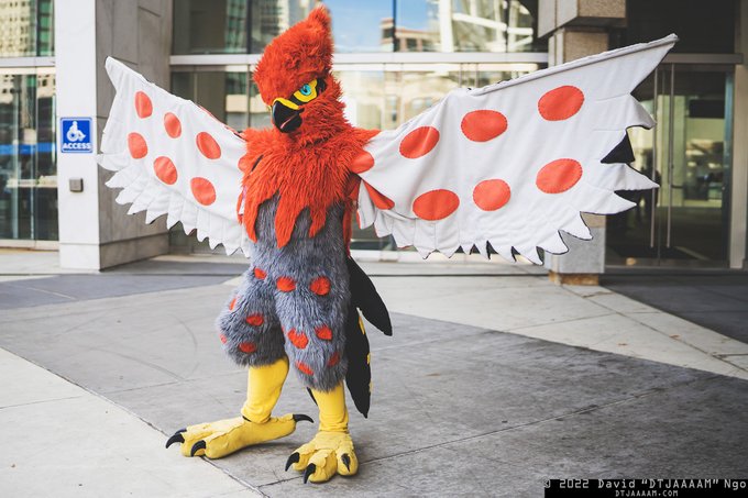 spitfyrethedragon (instagram.com/spitfyrethedra…) as Pokemon's Talonflame. #cosplay #youmacon #youmacon2022