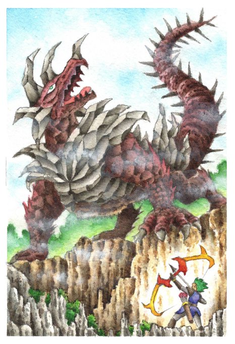 Title:モンスターハンター 画材:透明水彩(Winsor & Newton) 用紙:ラングトンプレステージ(100✕148) ★メイキング動画 youtu.be/PIa6nSBeF88 #オリジナルイラスト #イラスト #透明水彩 #YouTube