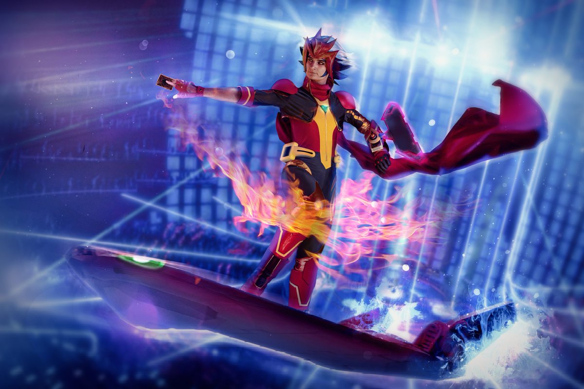 "Speed Duel!" 💨 📸: @ moped_1 (insta) 🖌: @Jcreationart 🤩👌🏻 #vrains #yugioh #yugiohvrains #ygovrains #遊戯王 #遊戯王VRAINS #soulburner #takeruhomura #cosplay #yugiohcosplay #vrainscosplay #yugiohvrainscosplay #soulburnercosplay