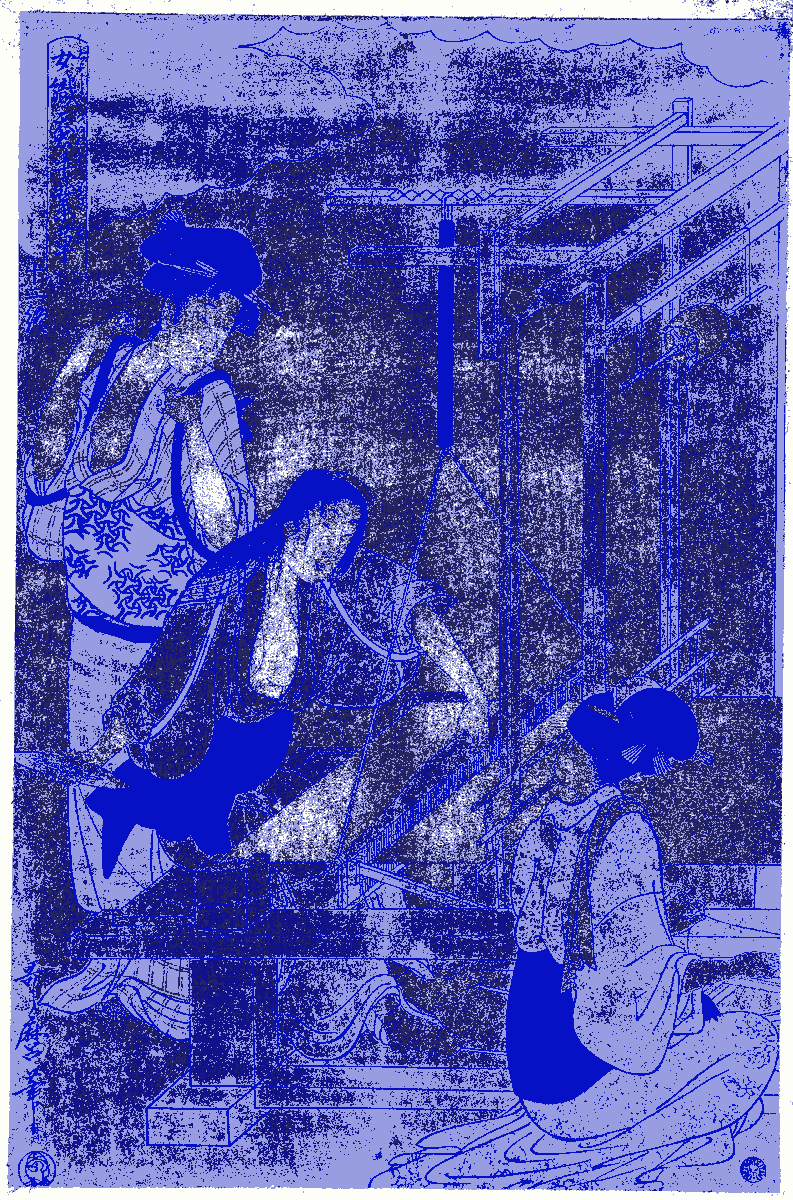 Women Weaving Silk Cloth 12, Kitagawa Utamaro, @metmuseum wikidata.org/entity/Q604758… #wikidata #digitalart #woodcutprint (Palette: #YvesKlein #Anthropométrie) 🖌🎨