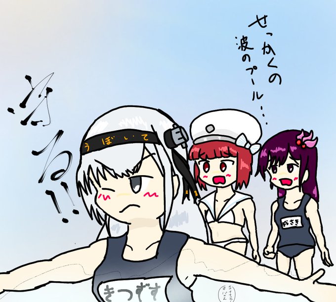 つい身を呈して波を防いでしまうお涼さん。 水着だと服で誤魔化すことが出来なく手間取ったのと、うっかり涼月と冬月を間違えて完成させて描き直したため17分オーバー。 #艦これ版深夜の真剣お絵描き60分一本勝負 #艦これ版真剣お絵描き60分一本勝負_20230304 #涼月 #如月 #Z3