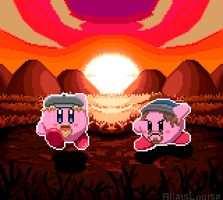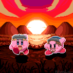 Le (pas si) légendaire combat entre @ZeKwev & @Shisheyu sur Kirby Samurai en pixel art 😈 (160x144px) #pixelart #ZEVENT2022