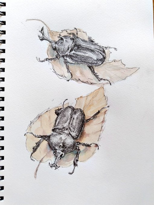 #在宅イラストレーター講座ZIL #ZIL #イラストレーター #イラストレーターさんと繋がりたい #イラスト #イラストレーターになりたい #絵描きさんと繋がりたい カブトムシ スケッチ 鉛筆・透明水彩