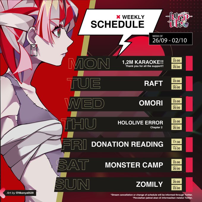 【WEEKLY SCHEDULE】 • YT Link: youtube.com/channel/UCYz_5… • GENERAL: #Kureiji_Ollie • LIVE: #OLLIEginal • ANNOUNCEMENTS: #OLLInfo • FANARTS: #graveyART • MEMES: #OLLIcin • FANNAME: #ZOMRADE Fan submissions might be used as thumbnail or other uses in the future✨🧟♀️❤️🩹