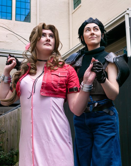 Gabby’s face when she discovered she gets to touch my chest for a photo | 📸 : ken.i.take.your.picture | Aerith: @powerhousecosplay #girlswhocosplay #cosplayprops #zackfaircosplay #finalfantasy7remake #cosplaygirls #cosplaywig #cosplay #cosplaygirl #game #ff7r #zackcosplay