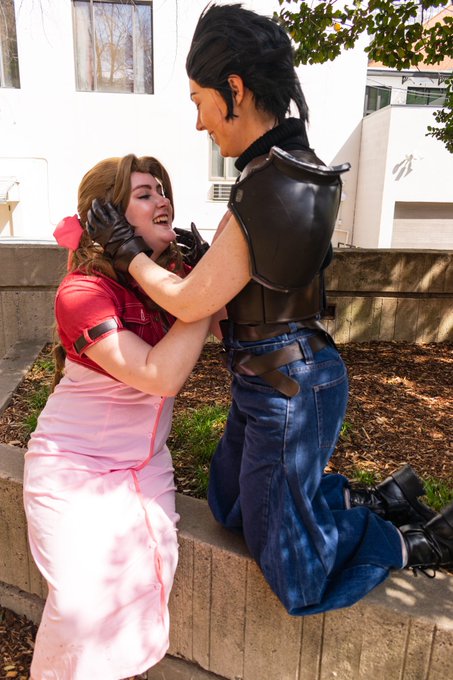 Getting the laughs out | 📸 : ken.i.take.your.picture | Aerith: @powerhousecosplay #girlswhocosplay #cosplayprops #zackfaircosplay #finalfantasy7remake #cosplaygirls #cosplaywig #cosplay #cosplaygirl #game #instacosplay #ff7r #zackcosplay #cosplayfitness #finalfantasyviiremake
