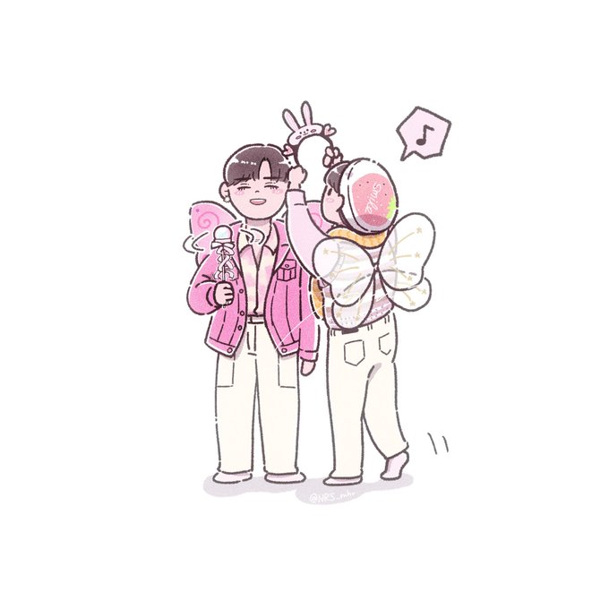 ノリノリで可愛くおめかしさせるぬぬちゃんと無抵抗でステッキ振りながらされるがままのぴしーの図、全部良かった #FanArtForZeeNuNew #TFS1stAnniversaryxZeeNuNew #ZeeNuNew #ZeePruk #NuNew
