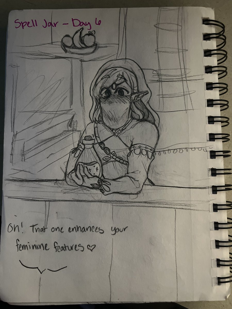 Inktober Day 6 - Spell Jar — This one is okay, I don’t like it as much as the other ones. At least I did the background perspective okay. — #inktober #inktober2022 #inktober2022day6 #ZeldaBreathoftheWild #zeldabotw