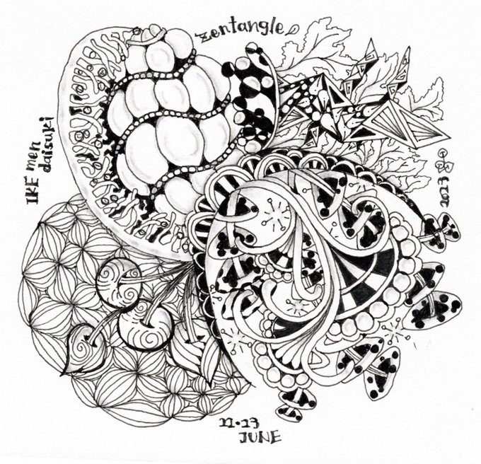 お疲れ様です🥤 仕事をサボッ…ゴホゴホ…仕事の合間に描きました✒️ はじめてフリーでゼンタングルだけを描いてみたんだけど、レッスンやTLで見るのとかなり違う😅 モロに性格がでたわ😅 (A5サイズ) #Zentangle #アナログイラスト