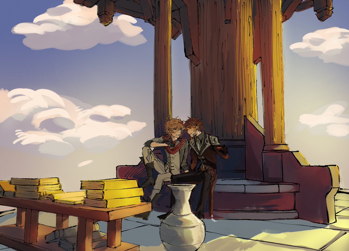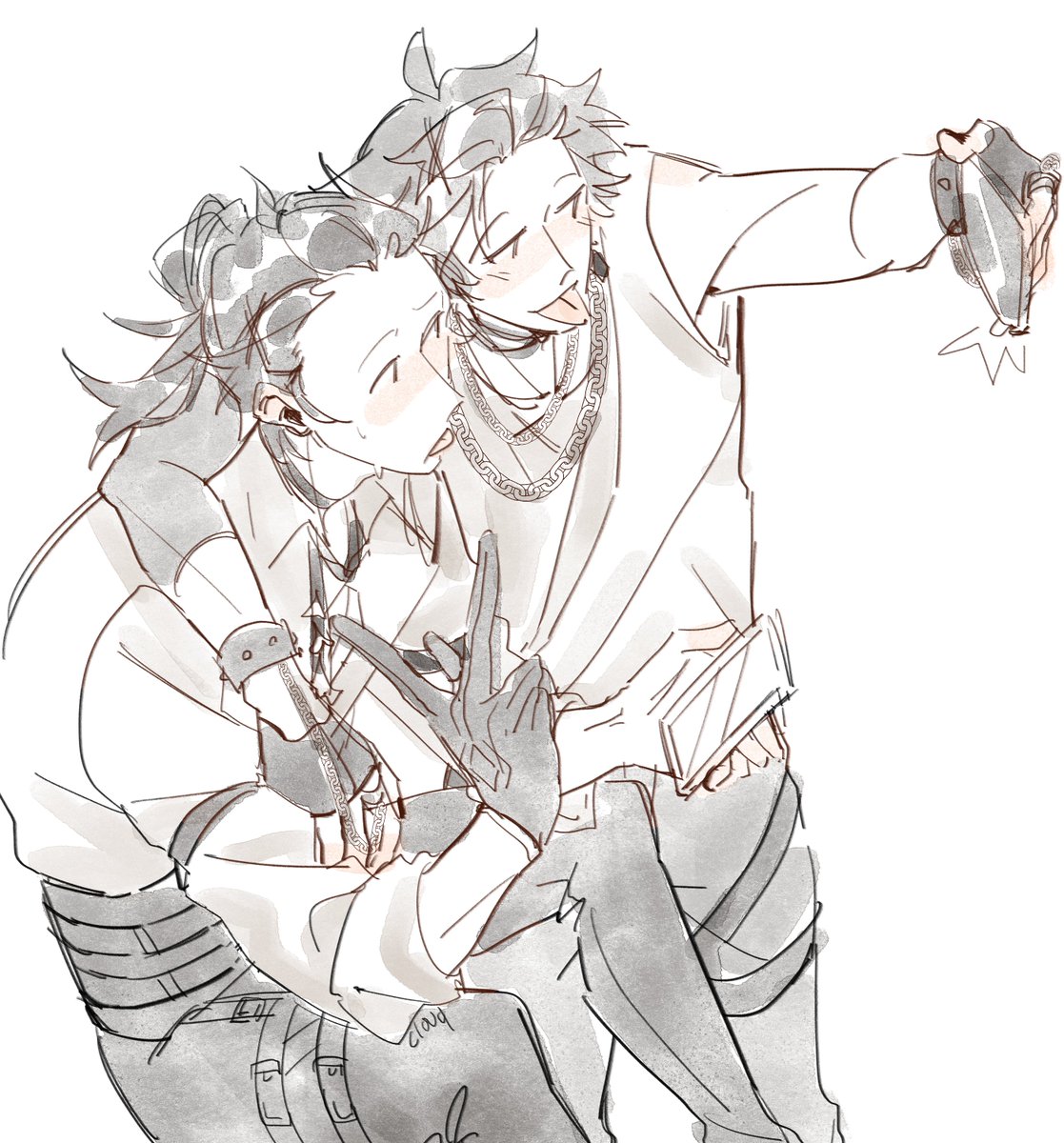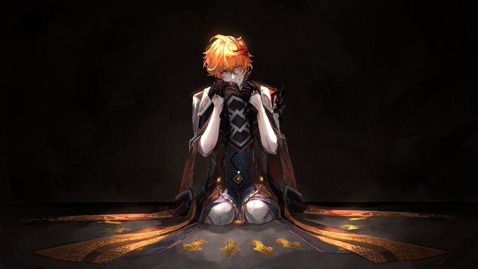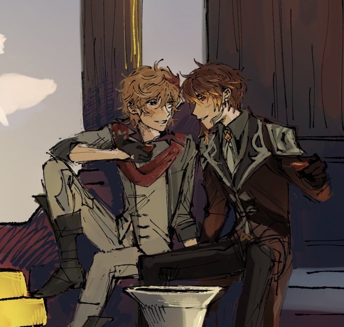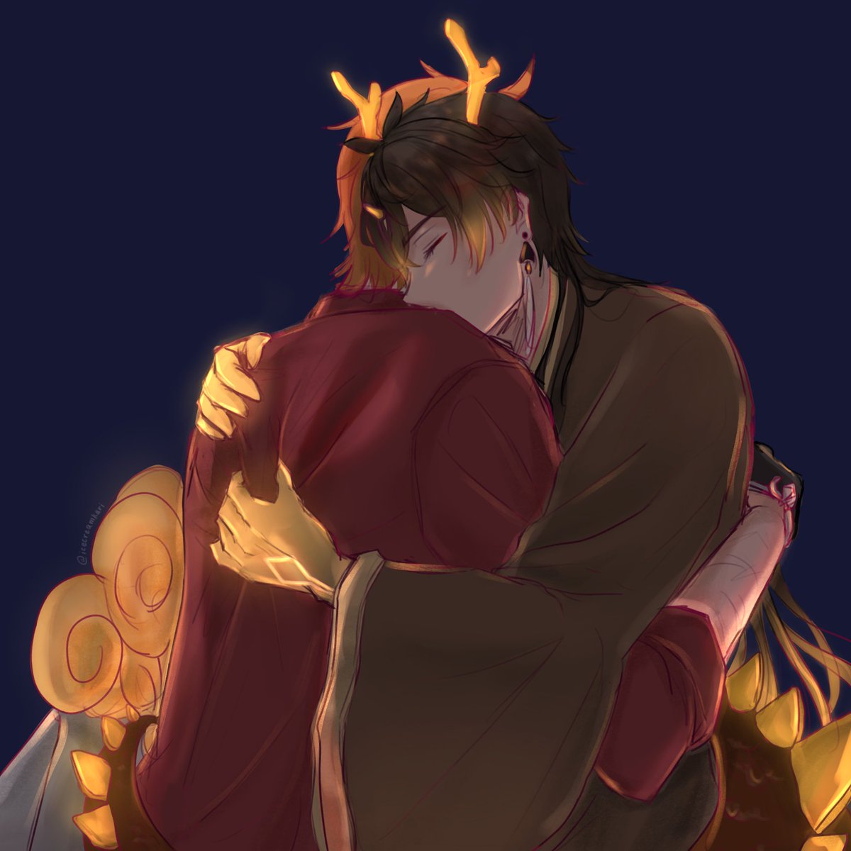 I woke up yesterday and chose @sconeswrites ' angst (with a happy ending ofc!). I had to draw it...Childe keeping eroded Zhongli's coat like a lifeline ; - ; #Zhongchili