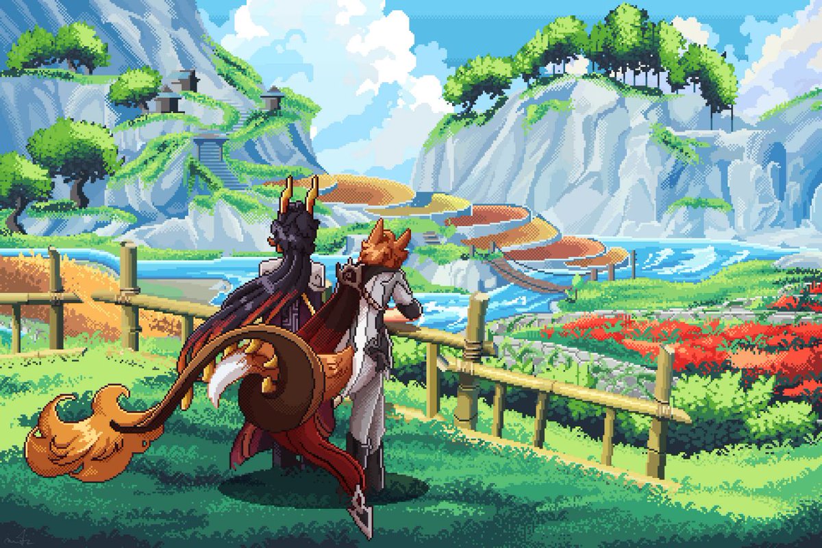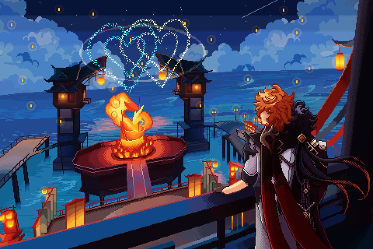 Pixel arts respost for @1ss1k1_gn 's giveaway. I wanted to paint something new but ended up sick for a week ugh. Anyway. #ZhongChiLiGiveaway #ZhongChili #ドット絵 #pixelart