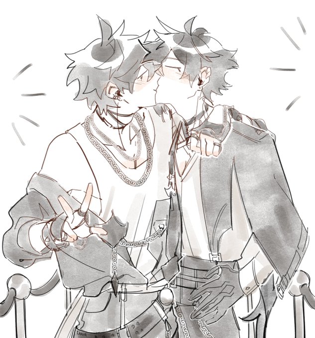 1/2 “HAPPY NEW YEAR!” Fireworks go off in the Harbor, lighting up the penthouse with bright colors. But they were wrapped up in each other, lips meeting in a perfect New Year’s kiss. – 💧🔄🔶 #ZhongChiLi #鍾タル #タル鍾 #鍾離生誕祭2022