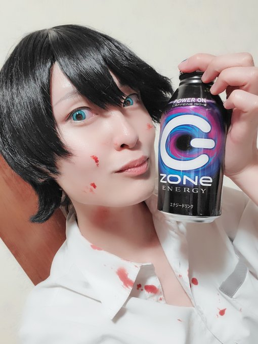 #石川荘 さんのキャンペーンで 頂きました⚡ ツイートを見て 撮影前に受取ろうと思っていたのに すっかり忘れ、 撮影後の着替え直前に頂きました! 一日戦い水撮もして 疲れきった身体に⚡ 帰りの運転の眠気飛びました👀 ⚠️cos 血糊ジャケoffでごめんなさい🙏 #Zoneエナジー #Zoneboostar
