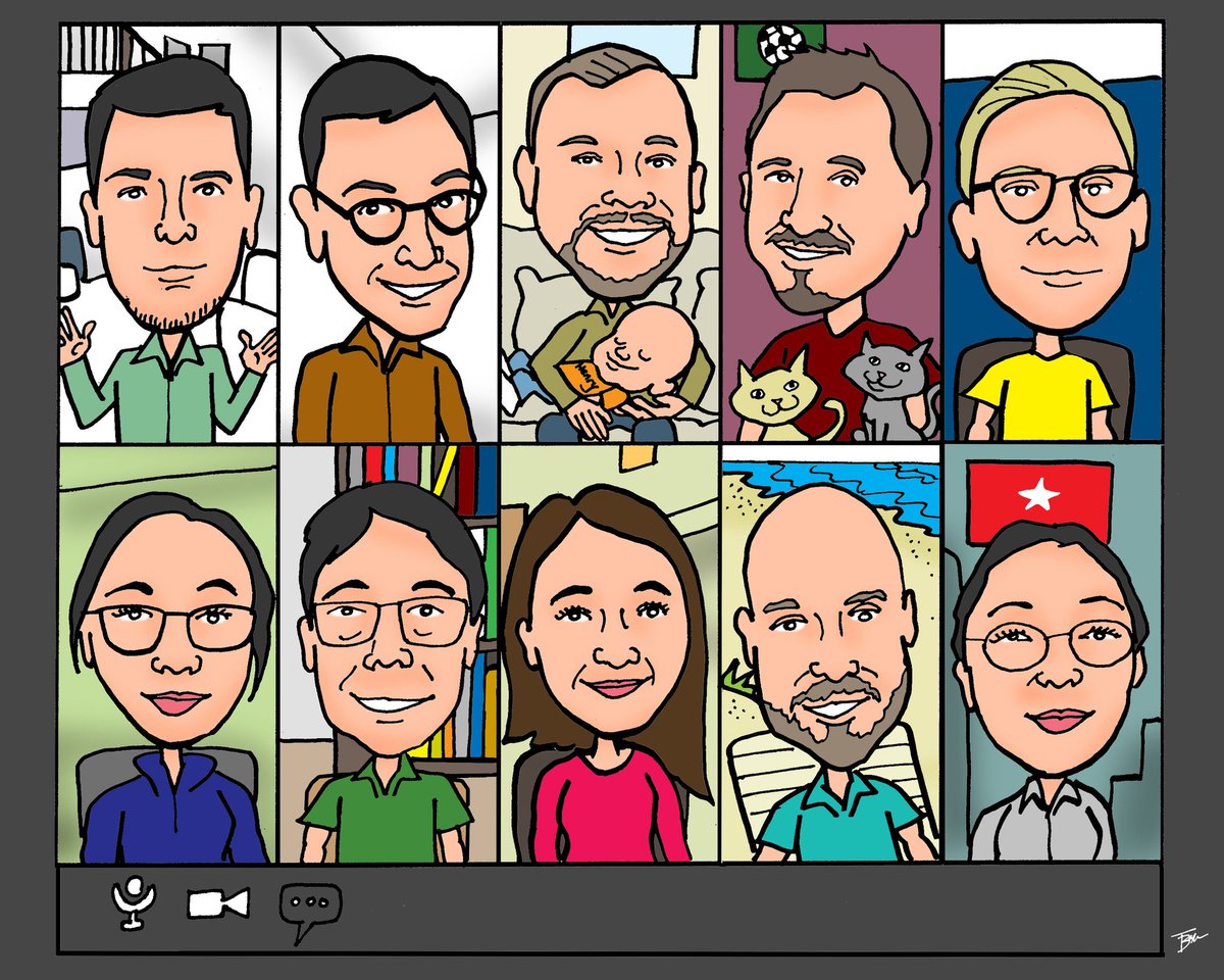 #caricature of a #zoommeeting crashed by kids & pets #illustration #cartoon #art #drawing #freelance #freelancer #ArtistonTwitter