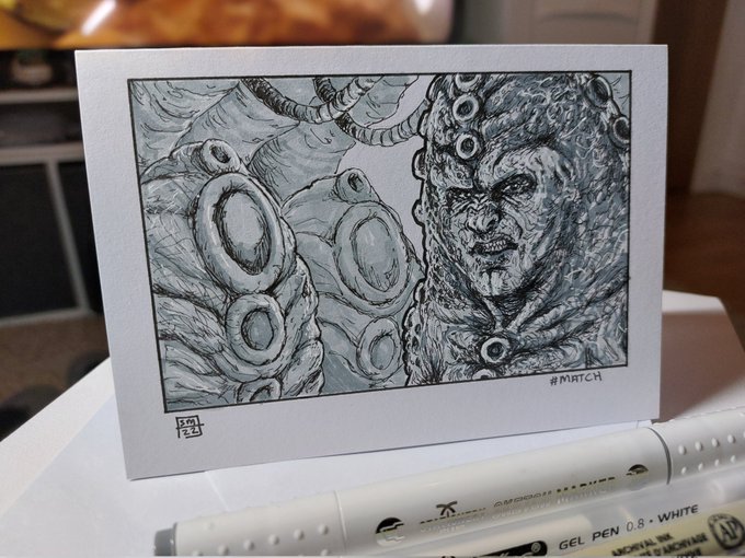 Day 8 of #Inktober2022 The word prompt today was #Match. So here is a #Zygon, known for making a perfect match. #DoctorWho #Inktober #InkArt #InkDoodle