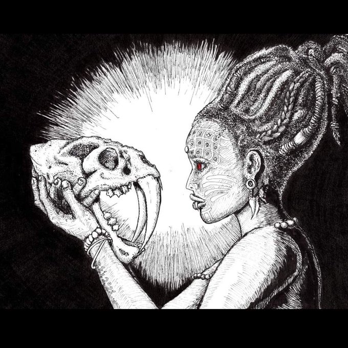Day 7 done a little earlier with #vampire and #tigerskull for #abnormalinktober and #skulltober Pretty jazzed with how that hair came out! #Inktober #inktober2021 #inktoberday7 #inktober2021day7 #voodoolady #tigerblood