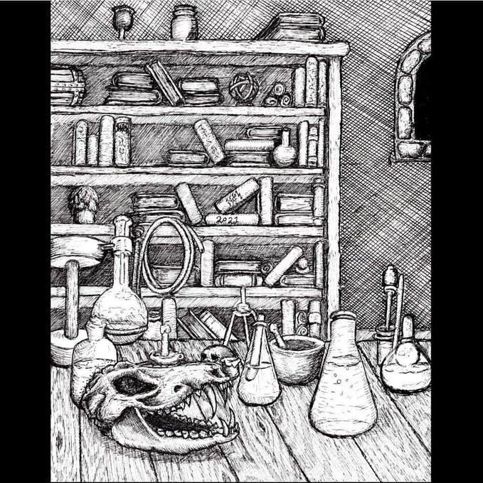 Day 9 done with a little time to spare, #possumskullfor #skulltober and #potion for #abnormalinktober #inktober2021 #inktoberalternatives #opossumskull #penandink