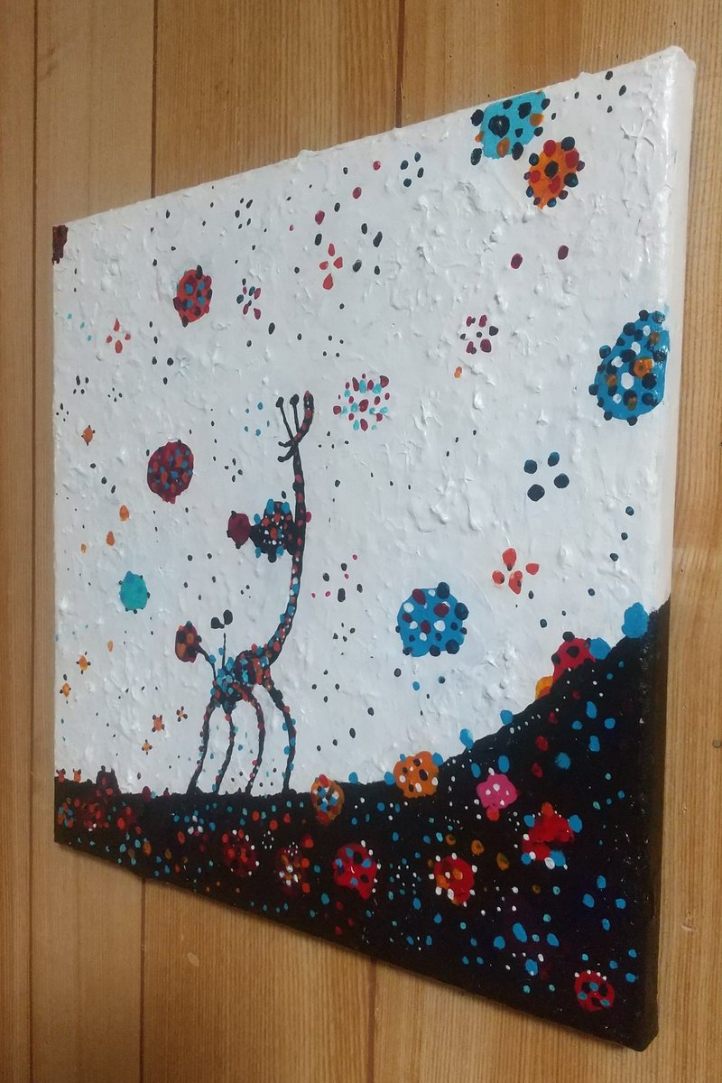 久方ぶりのSSMサイズがcompletionいたしましたよ😃寝かせて時間空けて描いた作品でして、アトリエの端から取り出して息吹を吹き込んでゆきました🦒 #giraffe #きりん #exhibition #casie #イラスト #illustrate #art #sky #store #design #interior #best #character #美術館 #aborigine #gallery